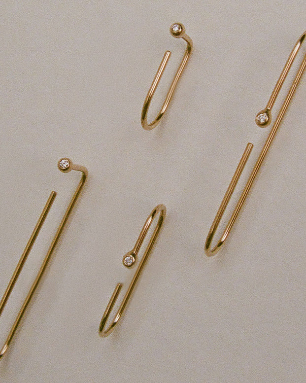 The Bend and Pin Earrings were the first pieces made under the Abel name, and are our best sellers to this day. With each earring able to be worn multiple ways, the styling possibilities are endless (especially with multiple piercings).