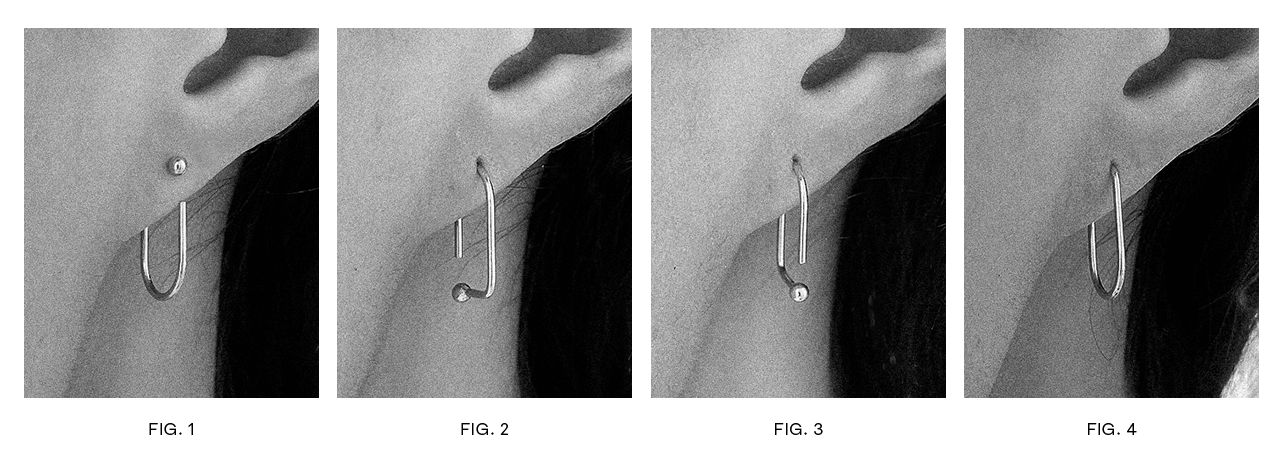 You can choose where the ball of the earring sits depending on if you thread the piece through the front or back of your earlobe. Continue threading the earring until the desired position is reached.